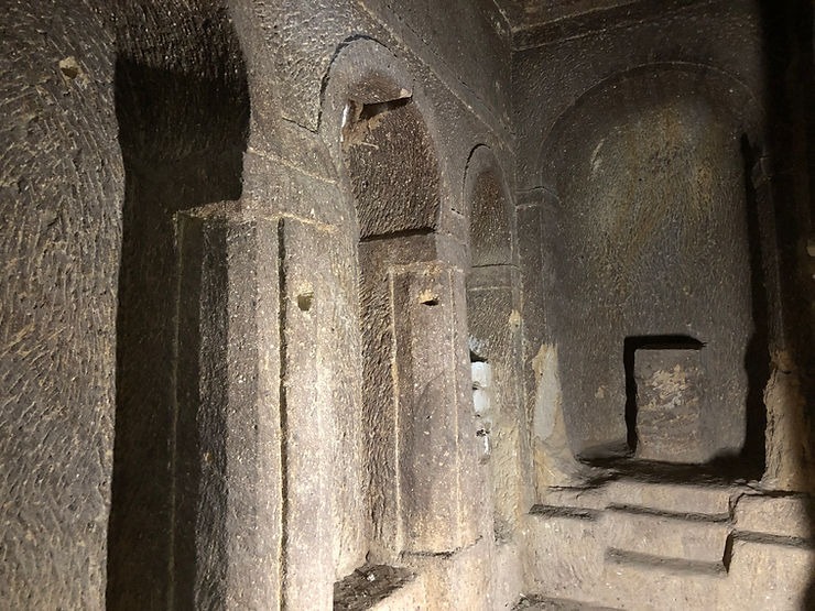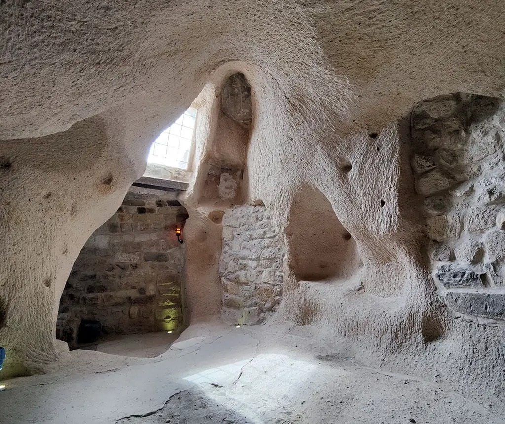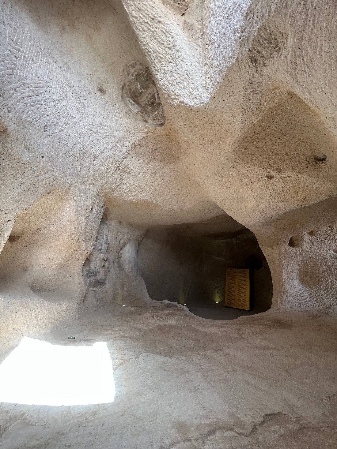Long ago, people carved out rooms, tunnels, and staircases inside the soft volcanic rock, creating a complex network of spaces.