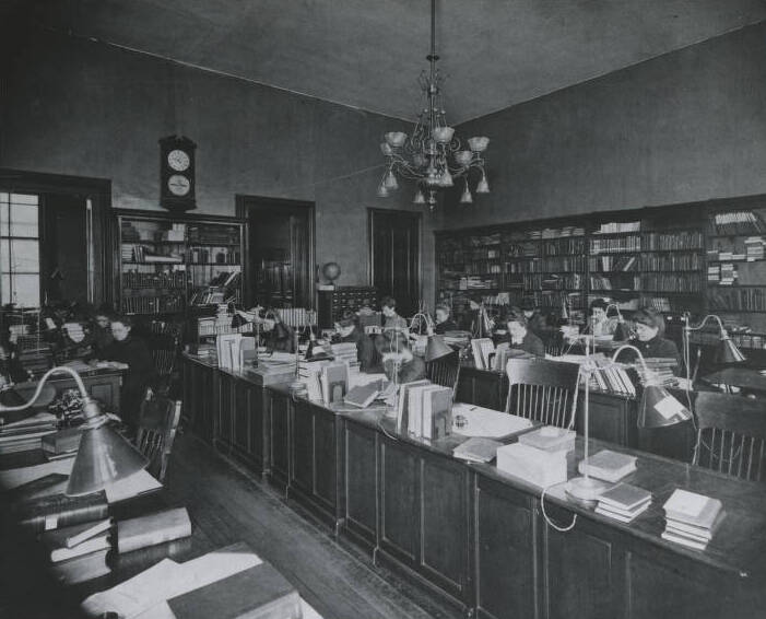 In addition to the spacious main reading room, the library contained several smaller rooms. The third floor housed four “art rooms,” featuring thousands of rare books from the United States and Western Europe. The fourth-floor attic was home to the Training Class, an in-house library school established by librarian Laura Smith.