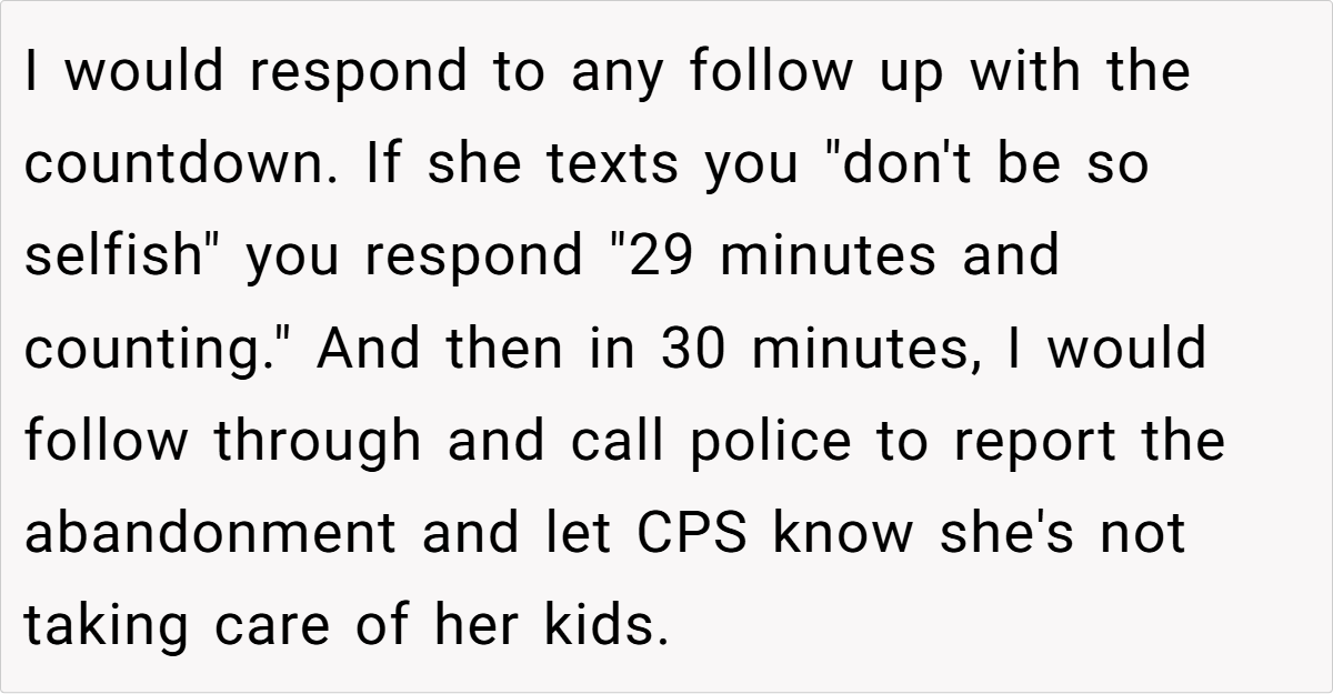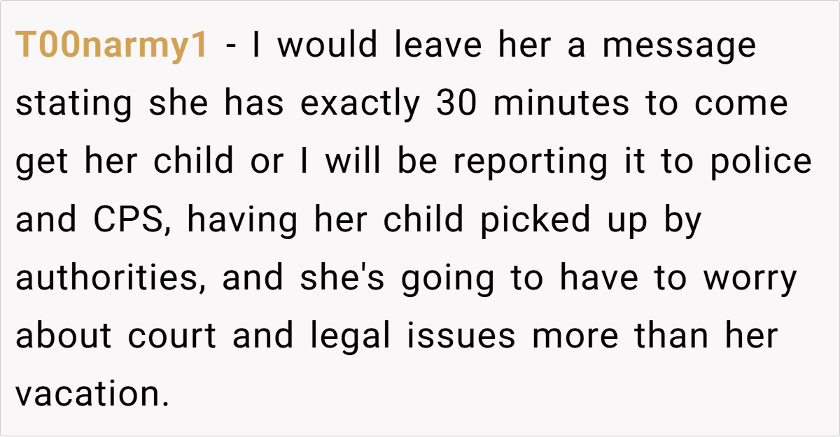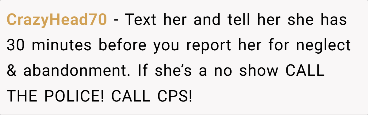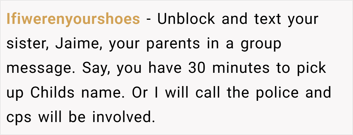 - Immediate Contact – OP should text Jamie and demand she pick up her daughter within a strict time frame.