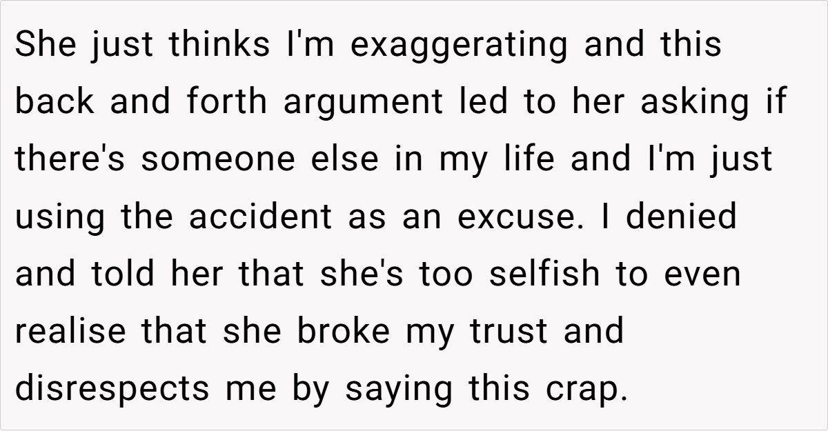 When a relationship reaches a tipping point after a life-threatening incident, it forces a hard look at boundaries and accountability. Clinical psychologist Dr. Ramani Durvasula once remarked, “Establishing clear boundaries is not just about keeping others at bay—it’s a vital form of self-respect and protection.” In this case, the narrator’s decision to ghost her girlfriend following a near-disastrous car crash is emblematic of an attempt to reassert control over a situation where her trust was fundamentally betrayed.