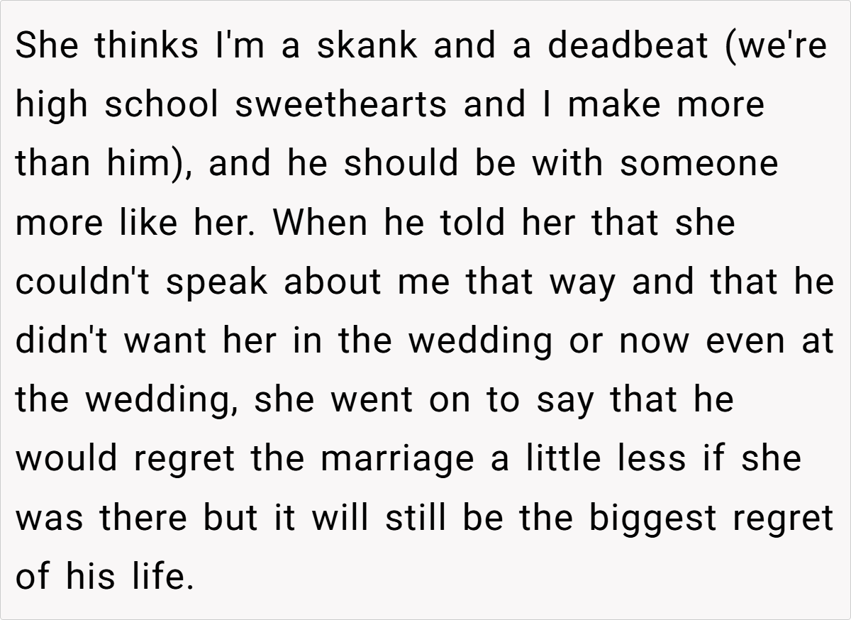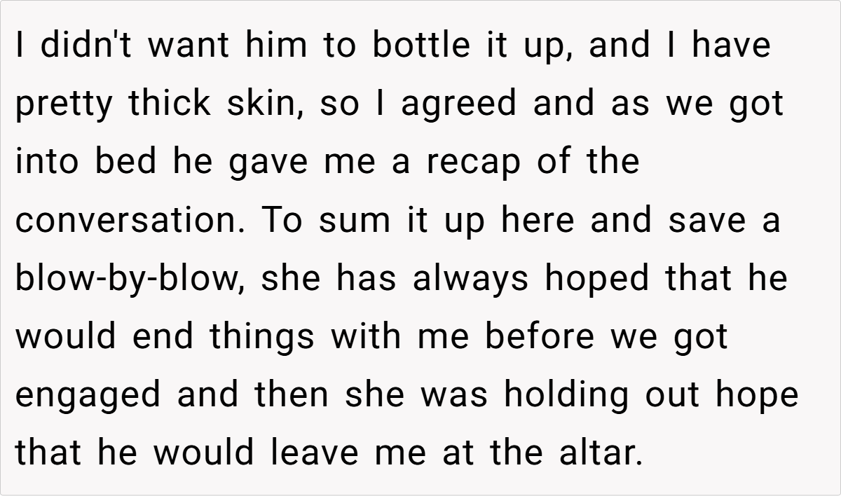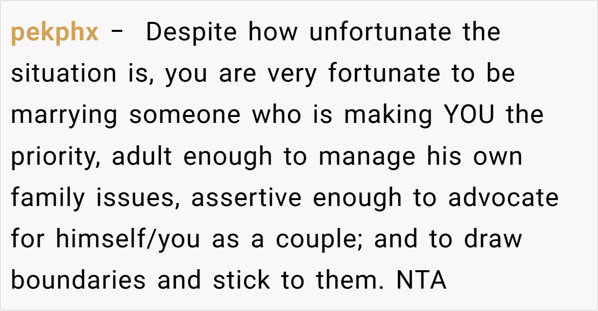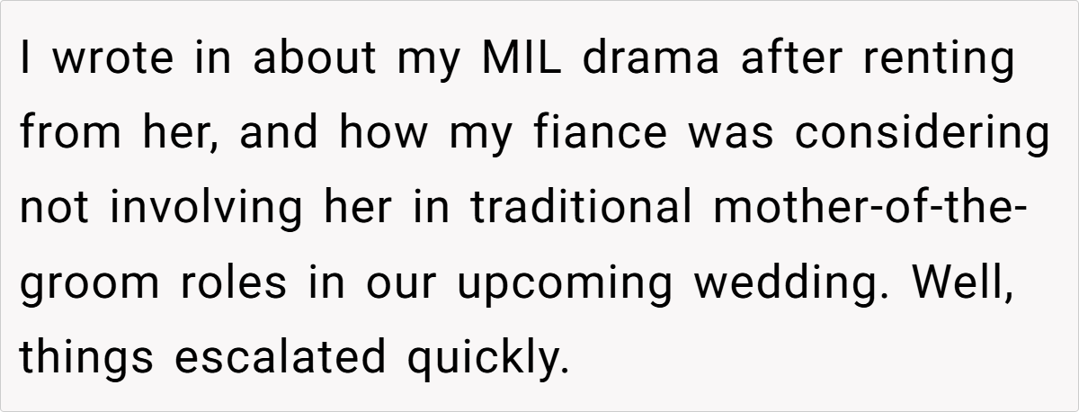 In this update, the couple’s decision to exclude the fiancée’s mother from traditional wedding roles is a response to longstanding, emotionally charged issues—ranging from disparaging remarks about the fiancée to a history of interference that could jeopardize the wedding’s harmony.