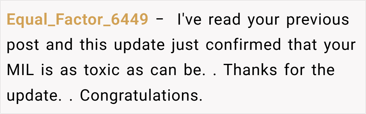In conclusion, this update challenges us to reconsider the traditional expectations of family involvement in weddings. The couple’s decision to exclude the fiancée’s mother from the wedding—and to institute strict boundaries moving forward—underscores the importance of self-care and mutual respect in relationships.