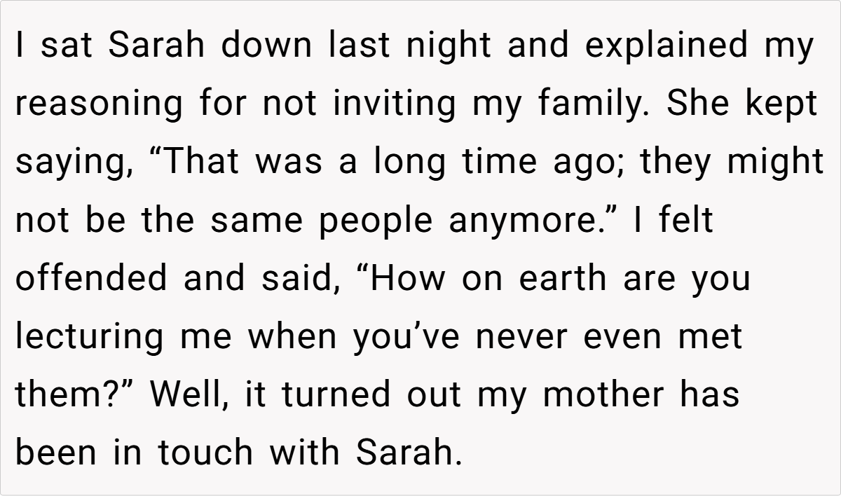 Family estrangement is a deeply personal and often painful experience, especially when it resurfaces during significant life events like weddings. A man finds himself at a crossroads when his fiancée, Sarah, pressures him to invite his estranged family to their wedding.