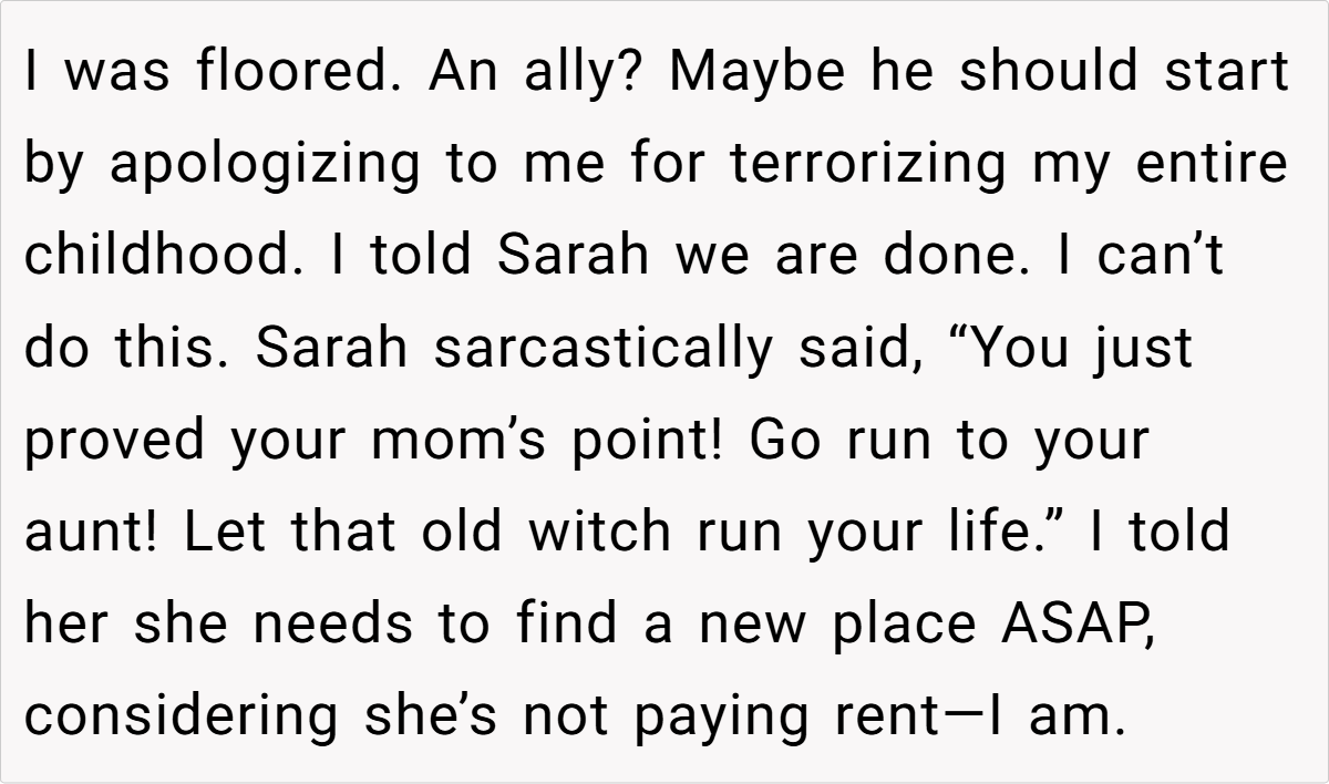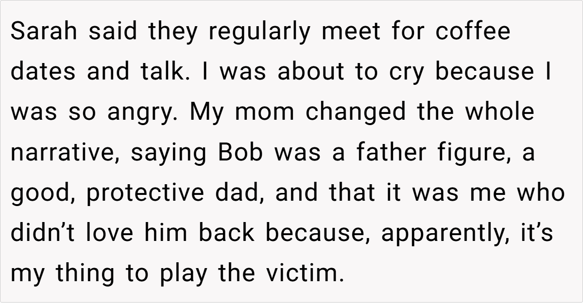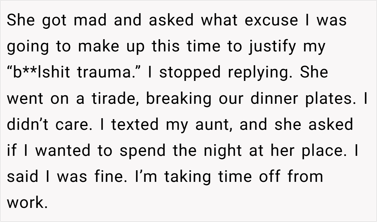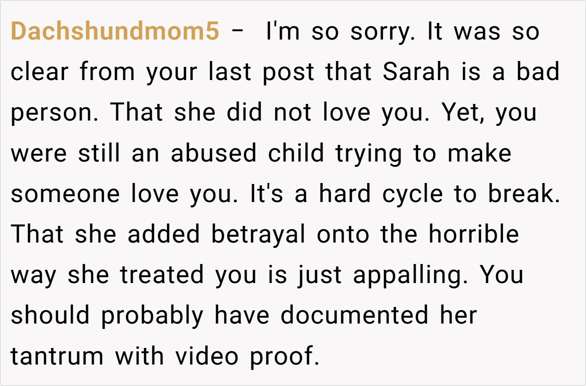 “Trauma survivors often struggle with trust and boundaries, especially when their experiences are invalidated by those closest to them.” This insight sheds light on the man’s reaction to Sarah’s dismissal of his trauma and her secret meetings with his mother.