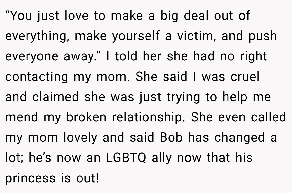 This is especially harmful for trauma survivors, who rely on their memories to make sense of their experiences.” The man’s mother’s attempts to rewrite his childhood narrative exemplify this toxic behavior.