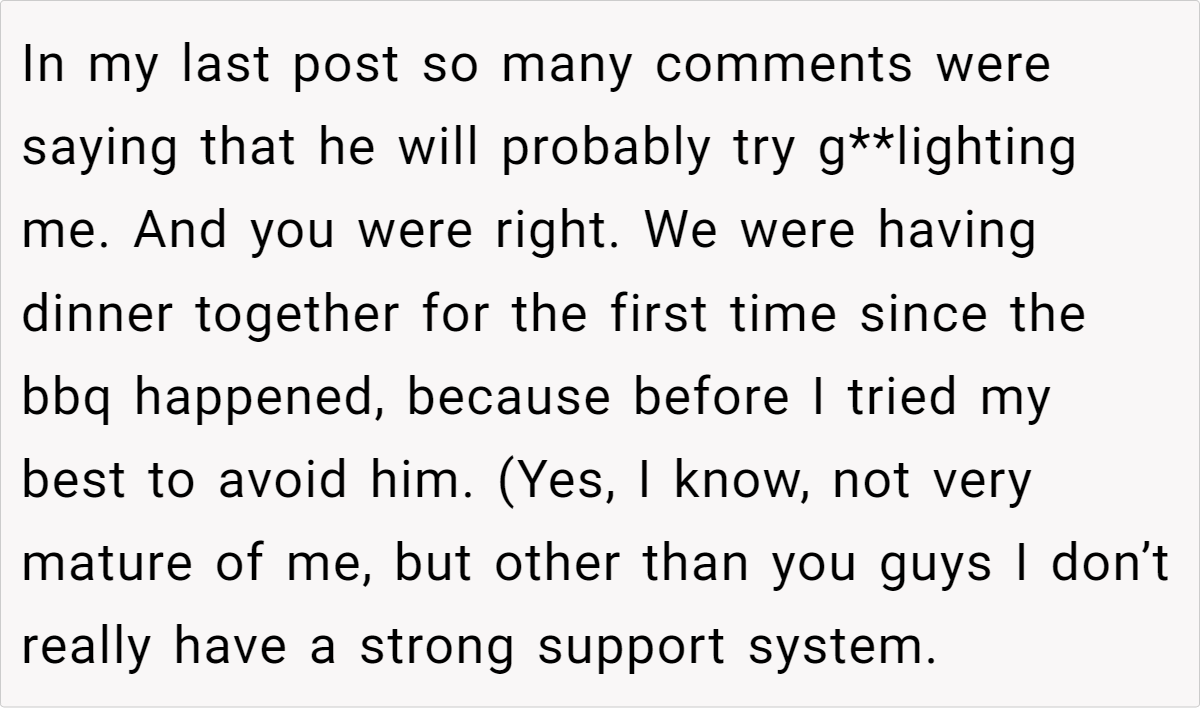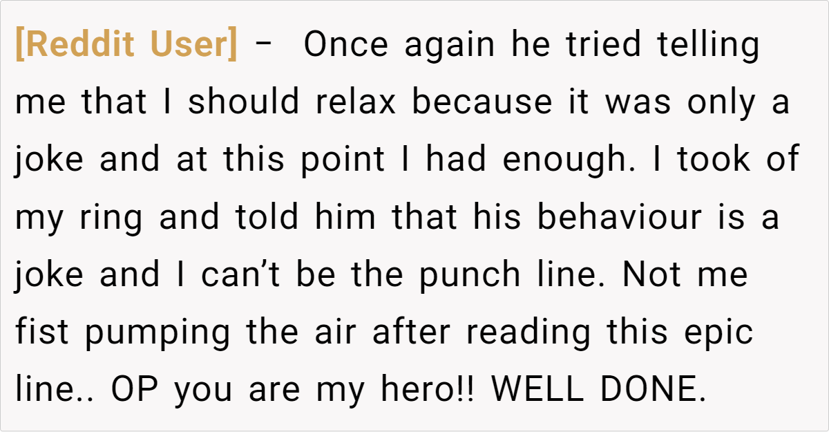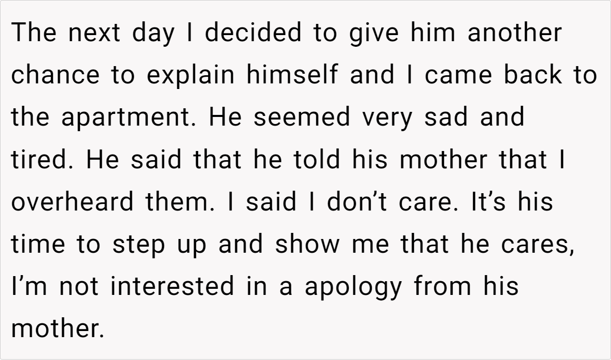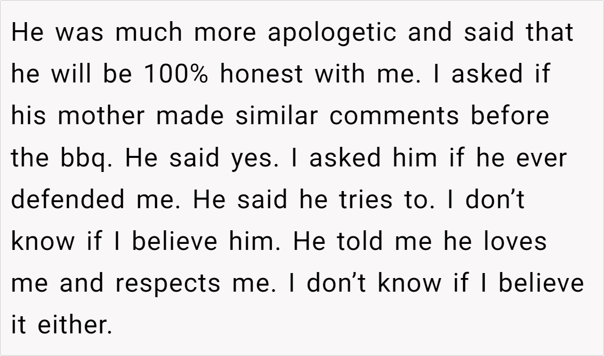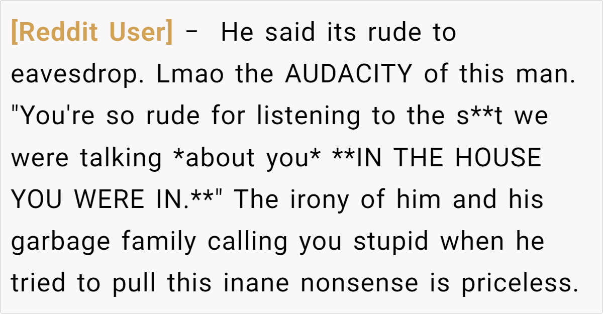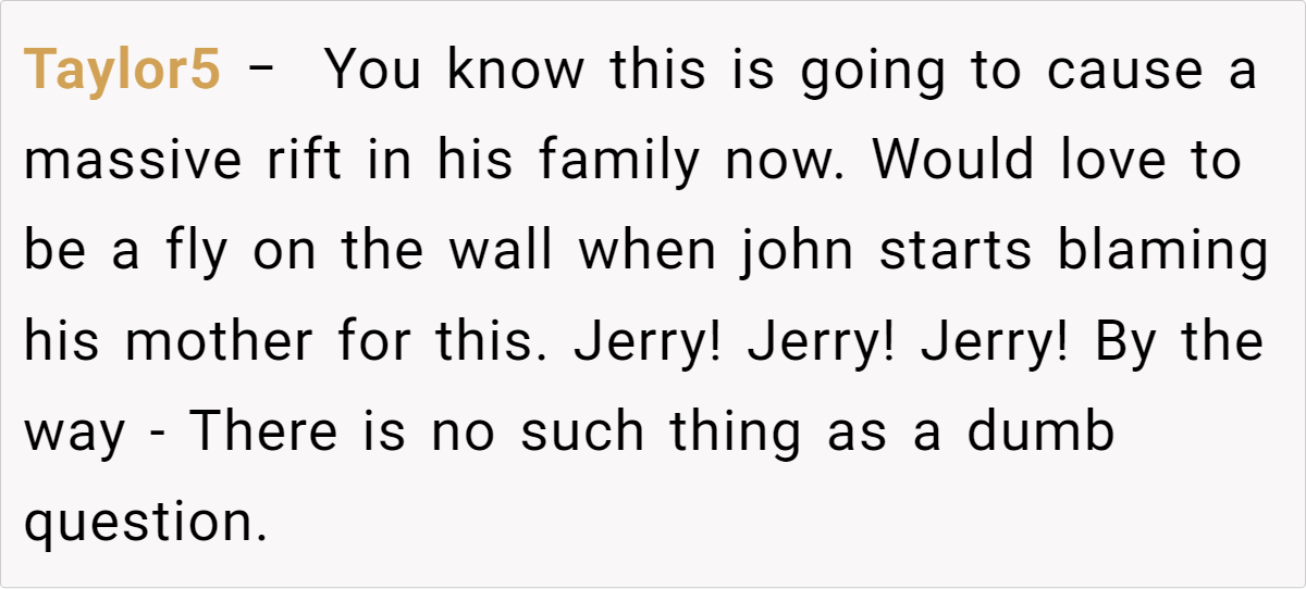 In this story, the bride-to-be discovered hurtful gossip that exposed not only her future mother-in-law’s cruelty, but also her fiancé’s failure to shield her. According to Dr. Lerner, “When trust is broken within a couple, it’s not always the content of the betrayal that matters as much as the lack of protection and empathy.” A fiancé is often expected to defend or at least empathize with a partner who’s being ridiculed. Here, that defense was notably absent until it was nearly too late.
