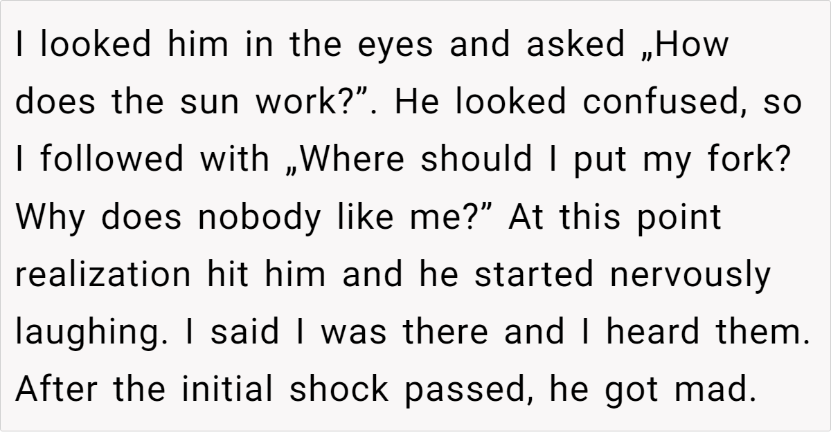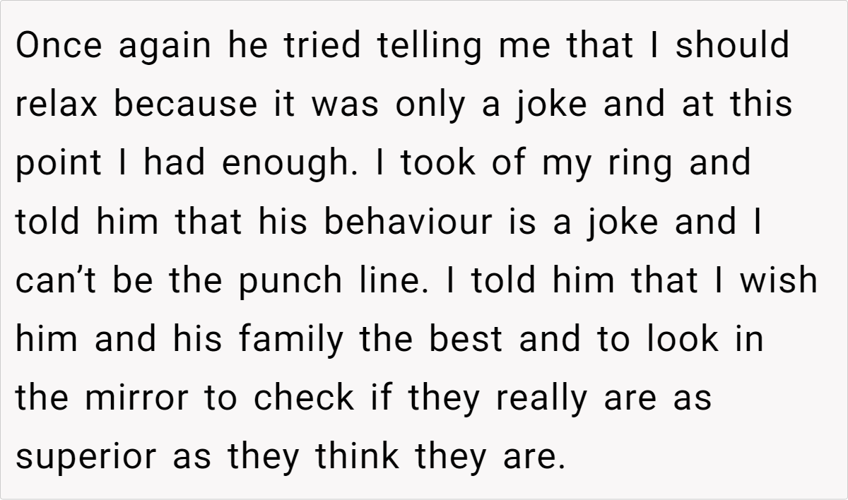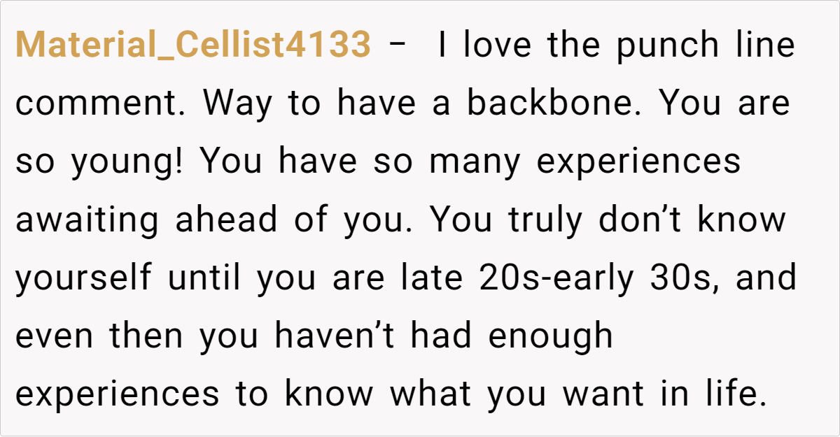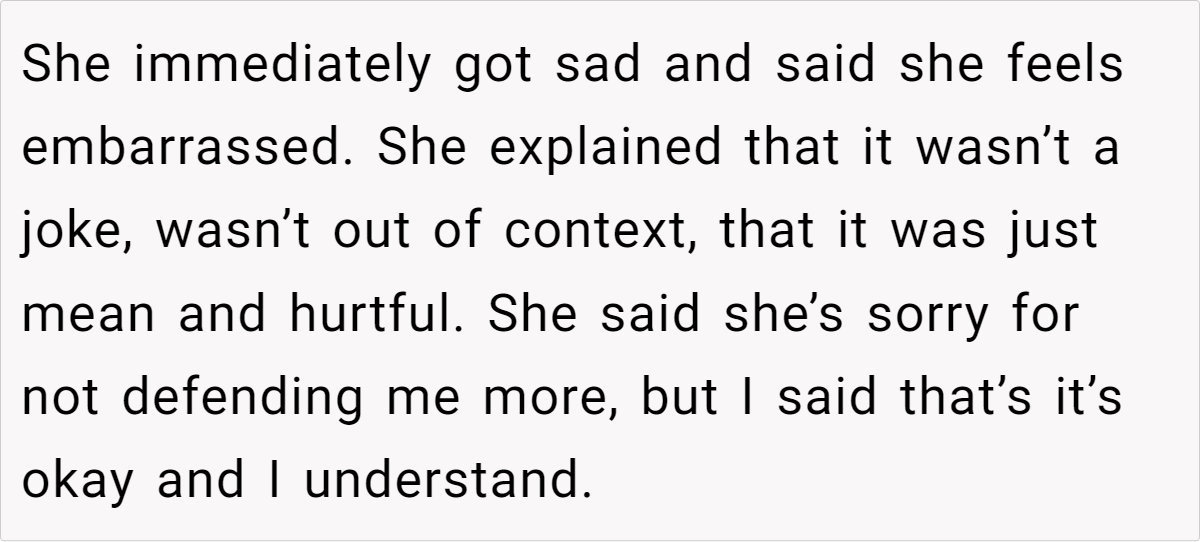 Ultimately, leaving a relationship that’s been your entire adult life isn’t easy. Yet this woman recognized that years of shared memories don’t compensate for a lack of respect. Dr. Lerner calls this phenomenon “choosing yourself”—the act of placing your well-being and dignity over social niceties or deeply ingrained bonds. People in toxic family environments sometimes dismiss or minimize remarks as mere teasing. But consistent ridicule tarnishes self-esteem and can lead to chronic unhappiness.