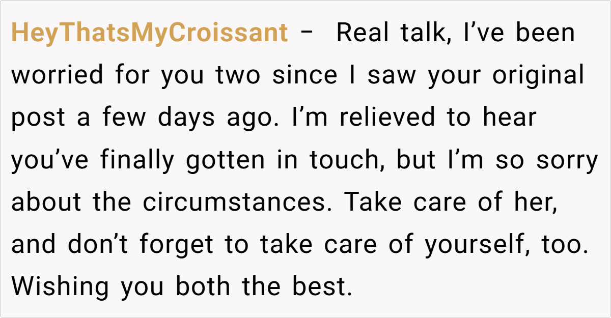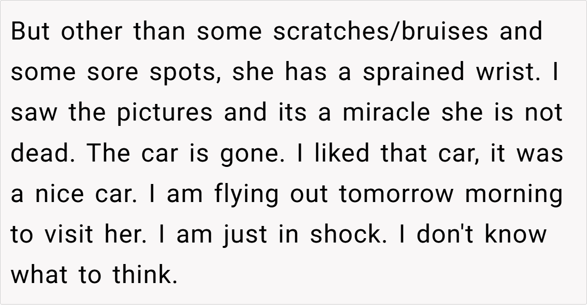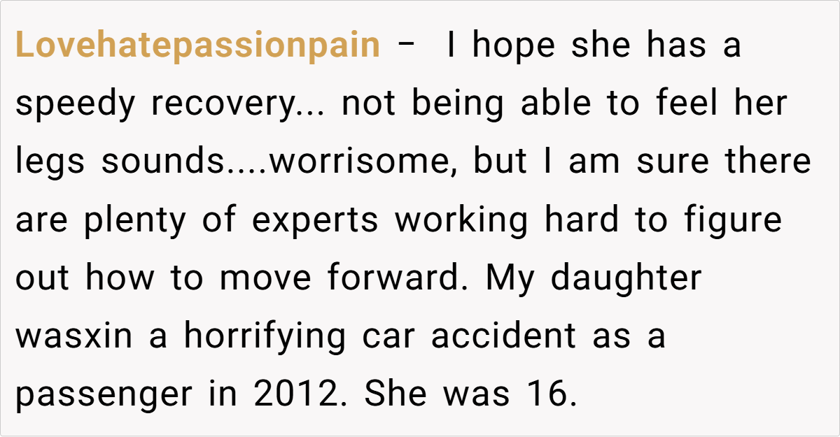The Reddit community is expressing a mix of empathy and concern. Many commenters have shared their own experiences of waiting anxiously for news after a loved one’s accident, noting that the uncertainty can be almost as painful as the event itself.