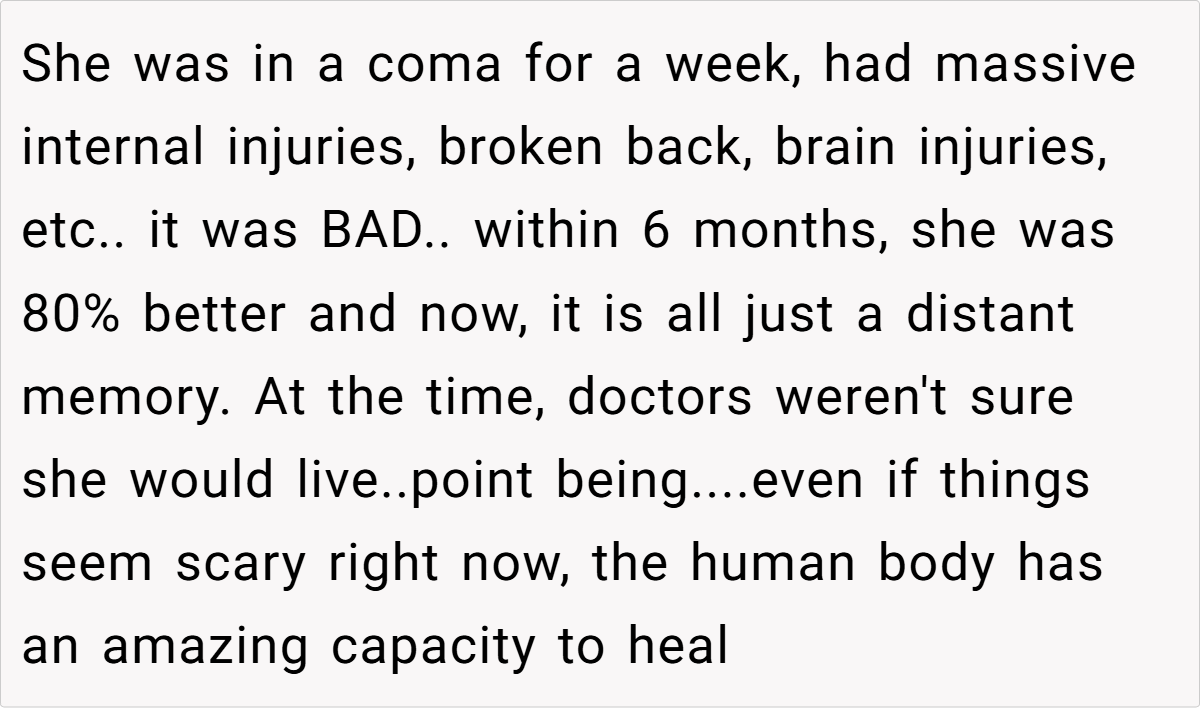 This update paints a vivid picture of the emotional rollercoaster that follows a serious accident. While the relief that she survived is palpable, the lingering uncertainty and shock are equally evident. How have you coped with waiting for news in a crisis?