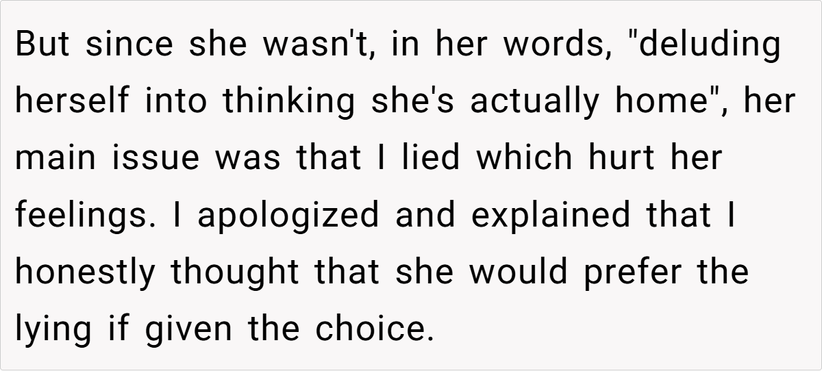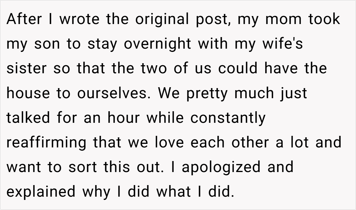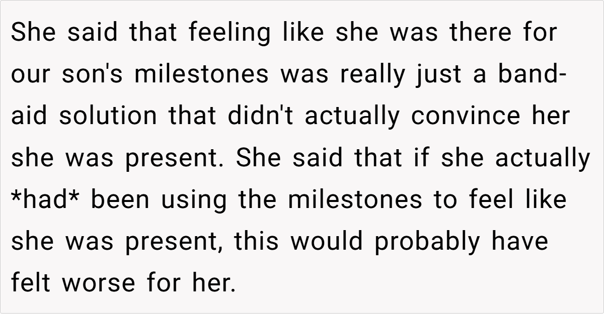 After my original post about lying to my wife regarding our baby’s milestones, things took an unexpected turn. In a candid and emotional conversation, my wife and I sat down to work through the hurt feelings and misunderstandings that had piled up. The catalyst was a difficult revelation—my mother had been covering for my absence during important moments of our son’s early life, and I had hidden the truth to spare her pain.