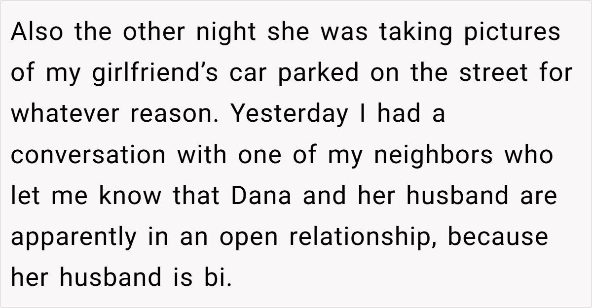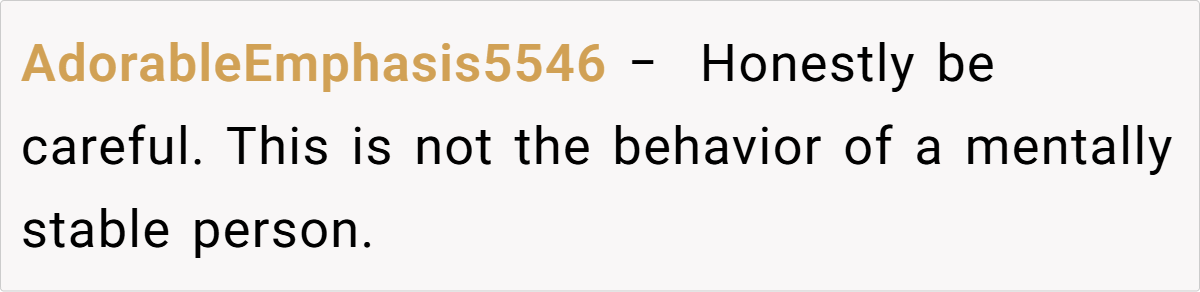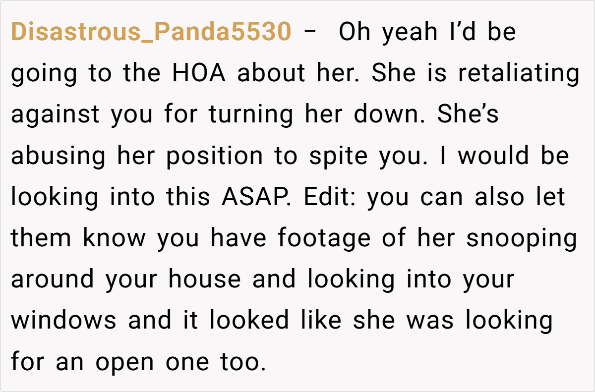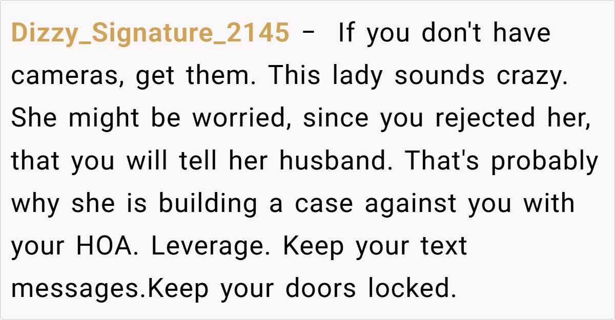Dr. LeslieBeth Wish, a licensed psychologist specializing in relationships, writes in Psychology Today: “Neighbors who cross boundaries often exploit proximity to test limits. Clear, consistent rejection—ideally with witnesses, like OP’s girlfriend—is critical to deter escalation.”