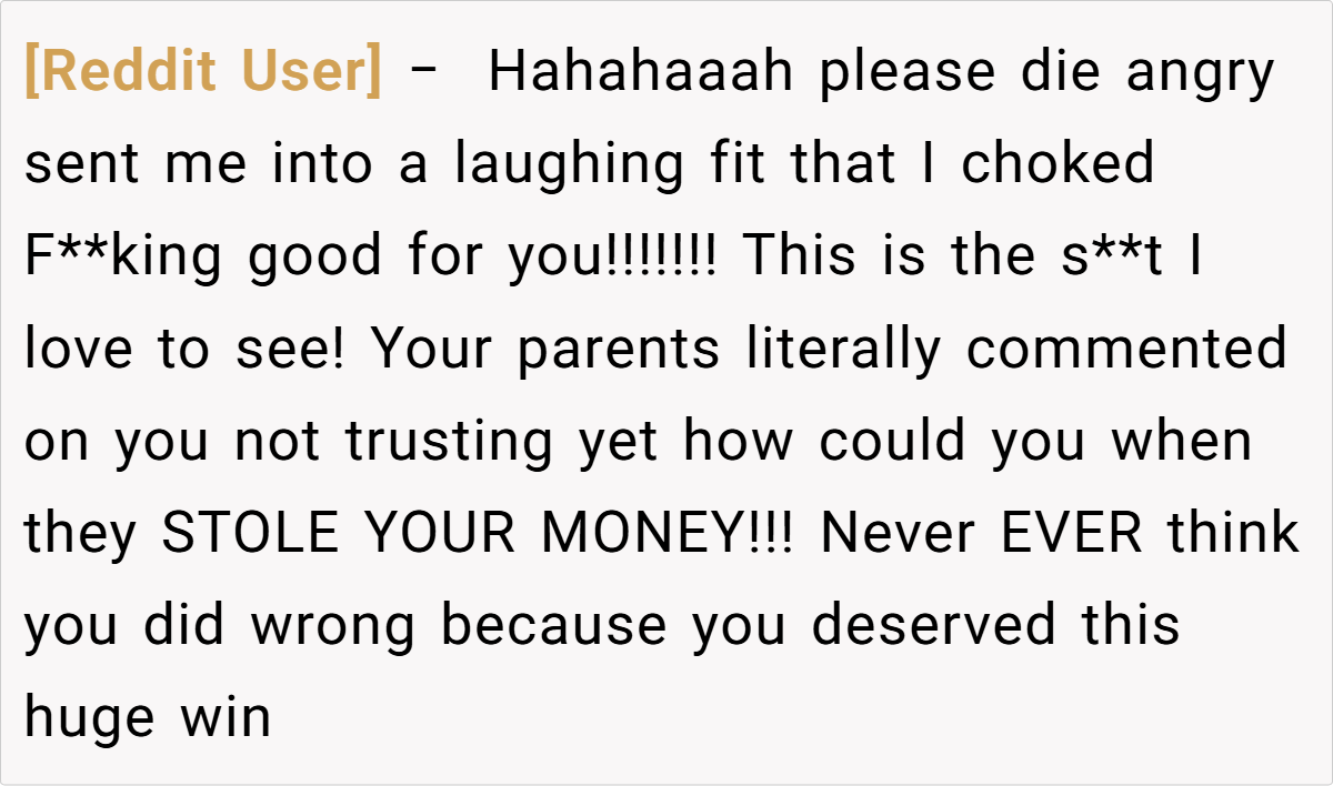 Sometimes, the road to personal empowerment is marked by painful but necessary decisions. One Redditor shared an update on their journey of reclaiming what was rightfully theirs after their parents stole from them, forcing them to take drastic steps to secure their future.