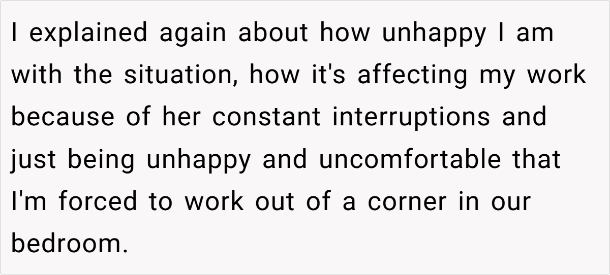 - OP’s office was taken away, and she was pushed into a corner of the bedroom.
