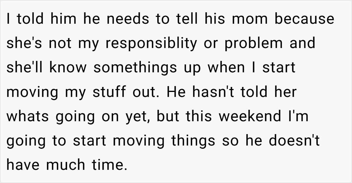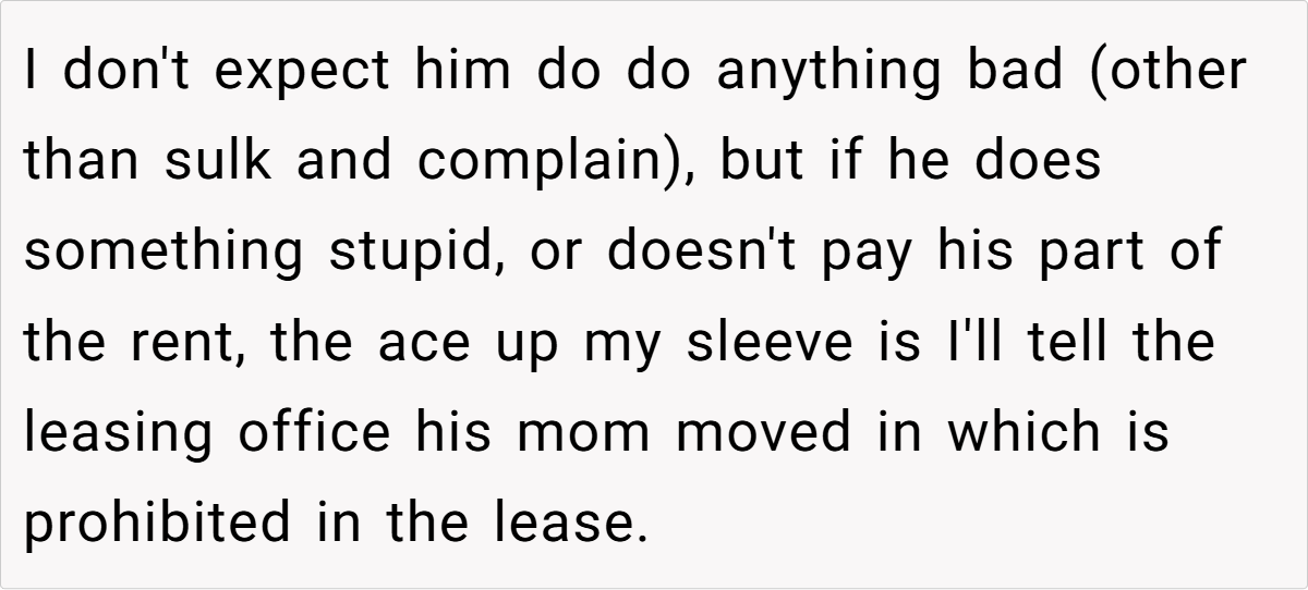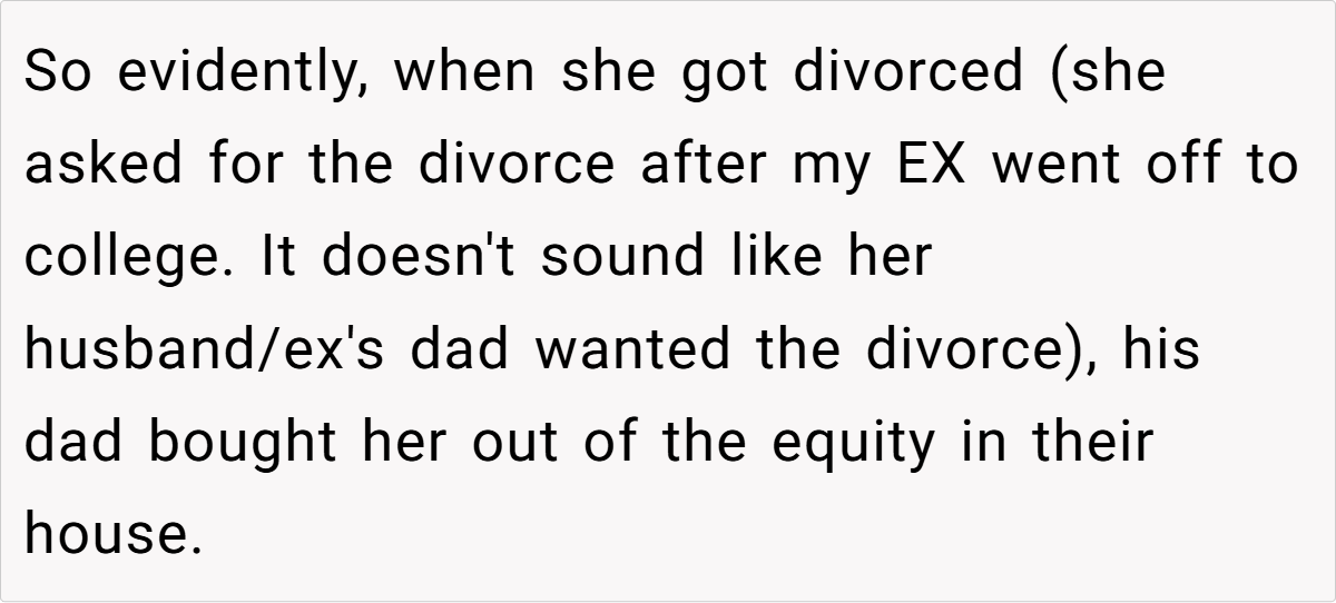 - MIL’s “Helplessness” Was a Manipulation Tactic – She never planned on leaving. She had savings from a divorce settlement and still chose to depend on OP.