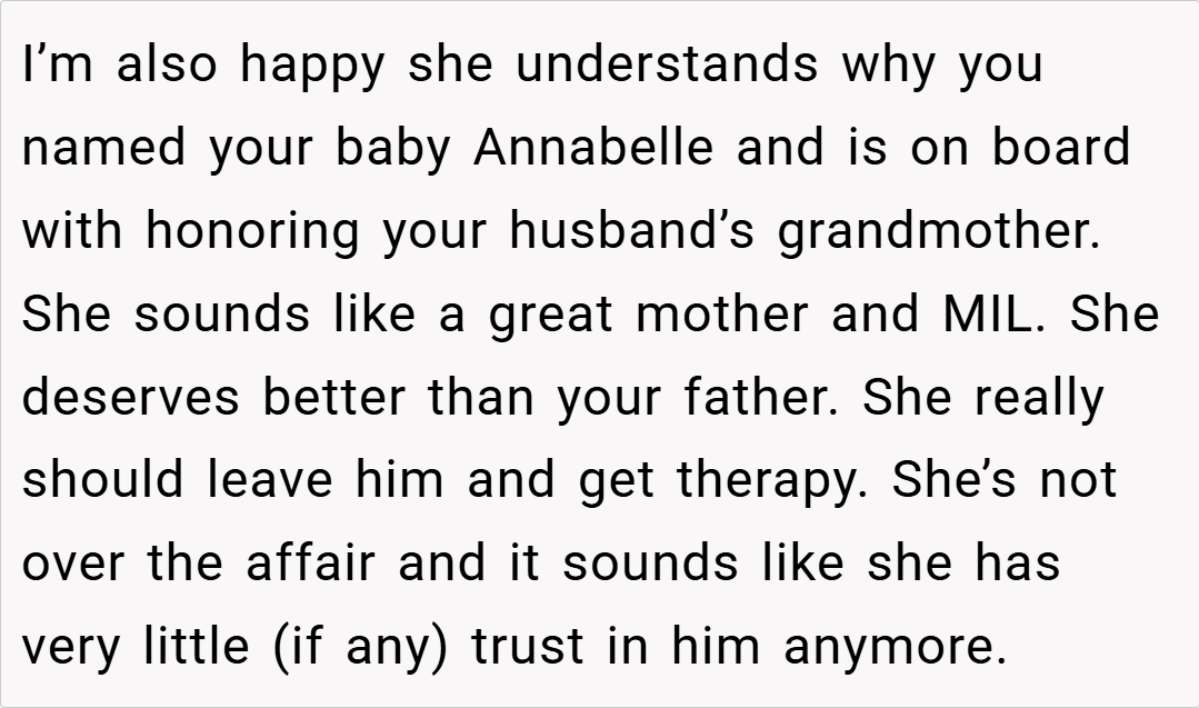 This OP : Aita for refusing to change my baby’s name after I named her after my dad’s affair partner?