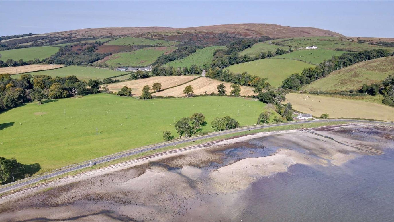 The first floor is dominated by a formal drawing room, complete with a splendid fireplace and wood-burning stove, offering breathtaking views over Kames Bay.