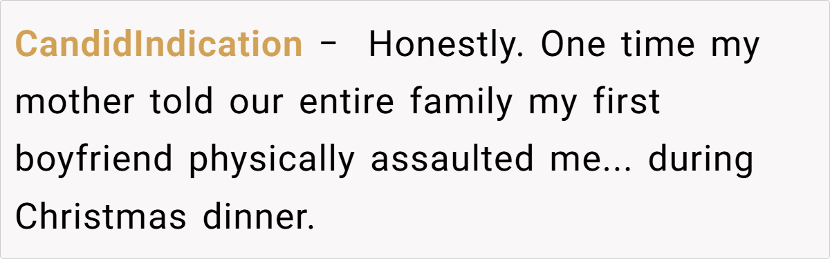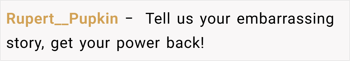 In this scenario, the repeated retelling of embarrassing moments isn’t just about humor—it reflects a larger issue of respect and trust in the parent-child relationship. The story reveals that even well-intentioned actions can lead to lasting emotional scars if boundaries aren’t respected. By frequently spotlighting a child’s most vulnerable moments, parents may unknowingly diminish their child’s self-worth, leaving them feeling exposed in every social setting.