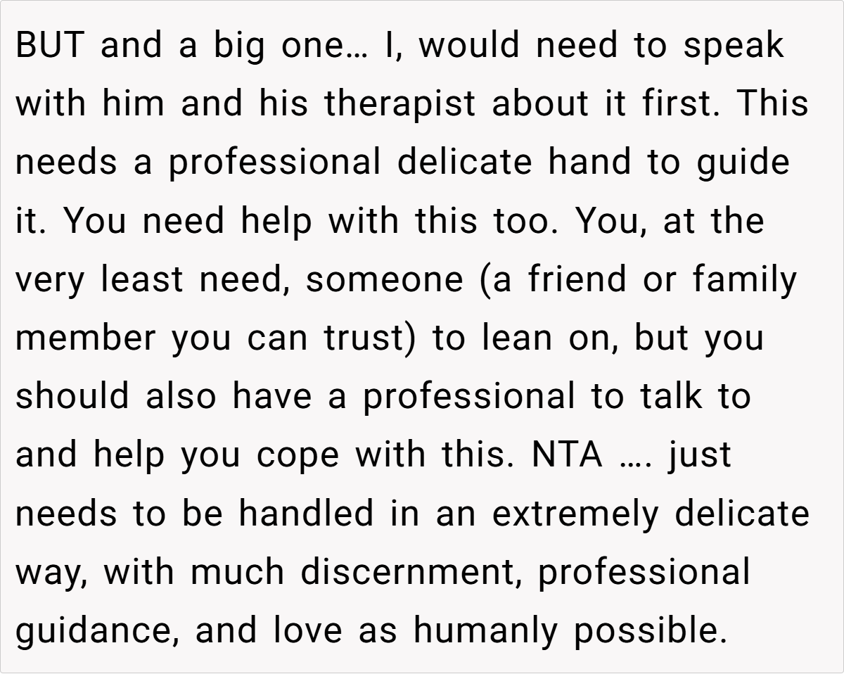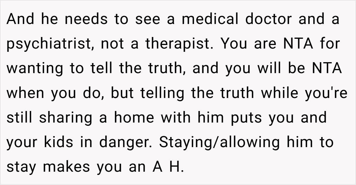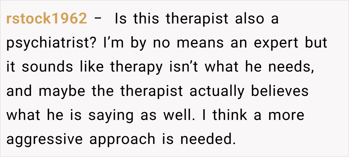 Ultimately, a multifaceted approach appears essential. The woman’s predicament underscores the need for continuous medical evaluation—not just for her husband’s well-being but for the family as a whole. Establishing a more transparent dialogue with the therapist, involving trusted friends, and seeking additional expert opinions may offer a pathway to healing.