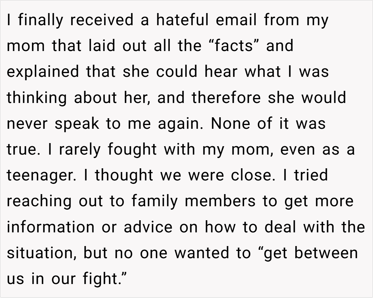 Her heartfelt narrative—filled with frustration, sorrow, and the desire for truth—invites us to explore the complexities of trust, mental illness, and the repercussions of living with unresolved conflict. It’s a story that touches on deep personal pain and raises broader questions about mental health care and the challenges of supporting a loved one in crisis.