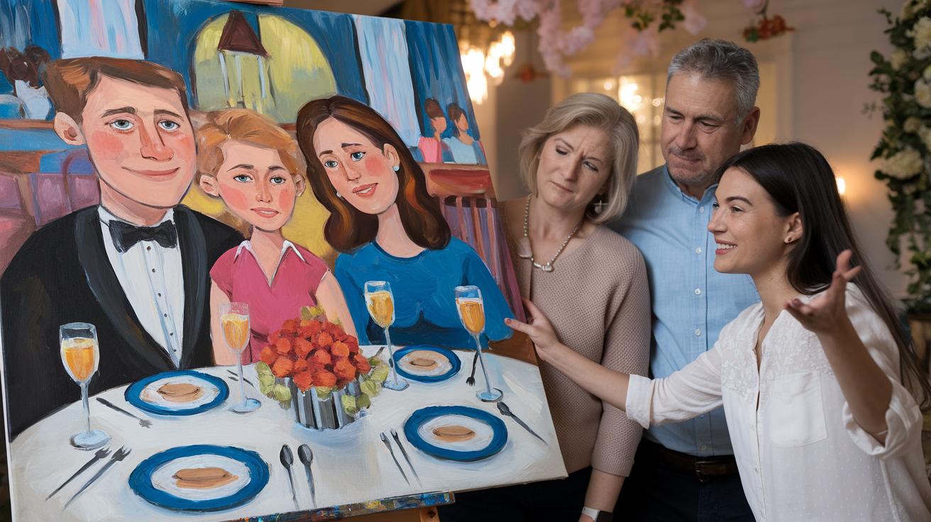 The painting, a massive 40×58” portrait of a happy family moment captured at a dinner celebration, is anything but a cherished keepsake. To her, it’s kitsch and tacky—a far cry from a sentimental treasure. Instead of feeling honored, she feels strongarmed into buying something she neither likes nor has space for.