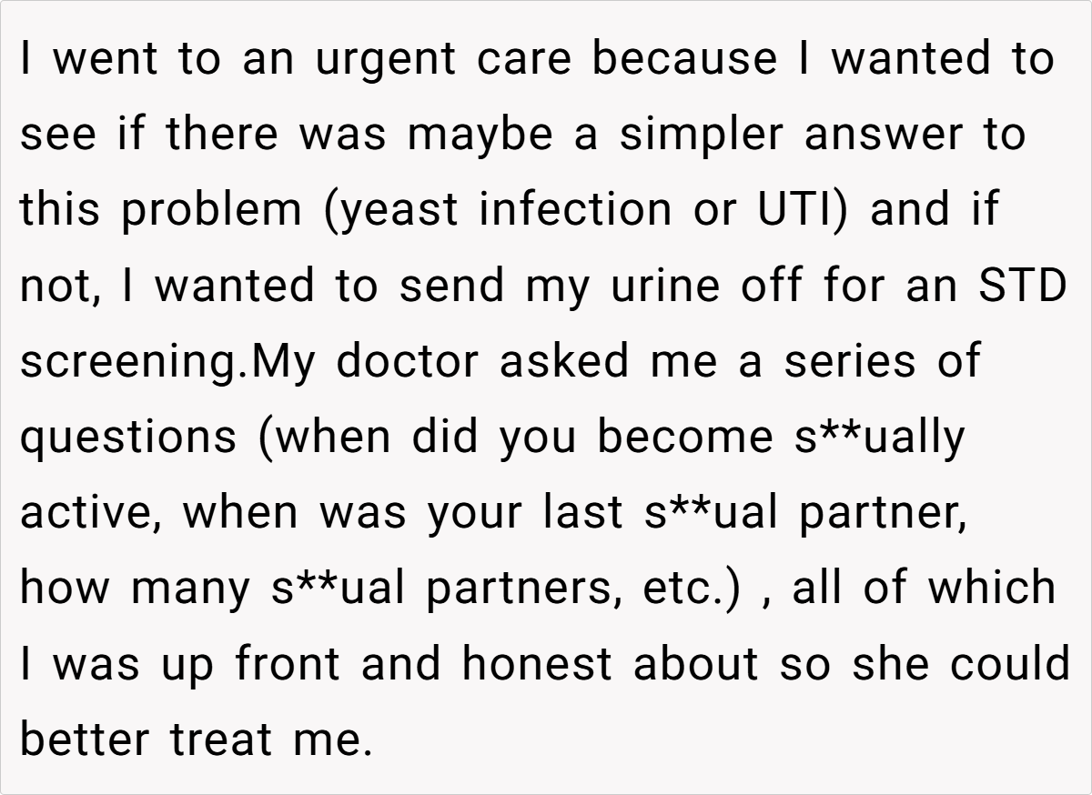 In the world of healthcare, trust and respect are essential. Yet sometimes, a simple visit can take an unexpected turn into a judgmental lecture—one that leaves you reeling and questioning whether your personal choices should ever be up for debate. This story follows a young woman who, after a routine visit to an urgent care center for a minor concern, found herself on the receiving end of unwanted moralizing. Instead of receiving objective, compassionate care, she was met with unsolicited advice on her “character,” leaving her embarrassed and furious.