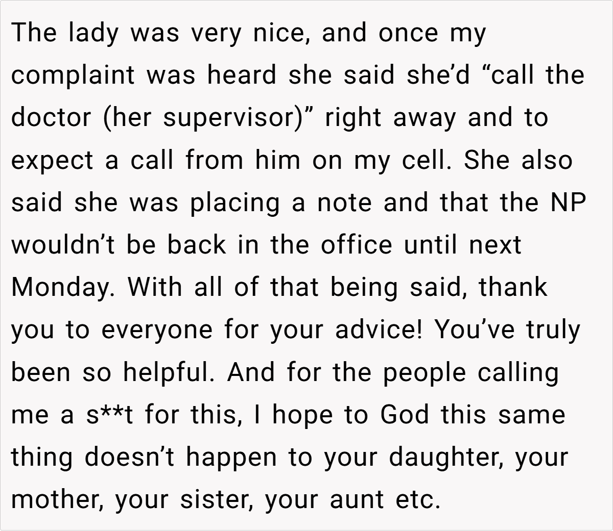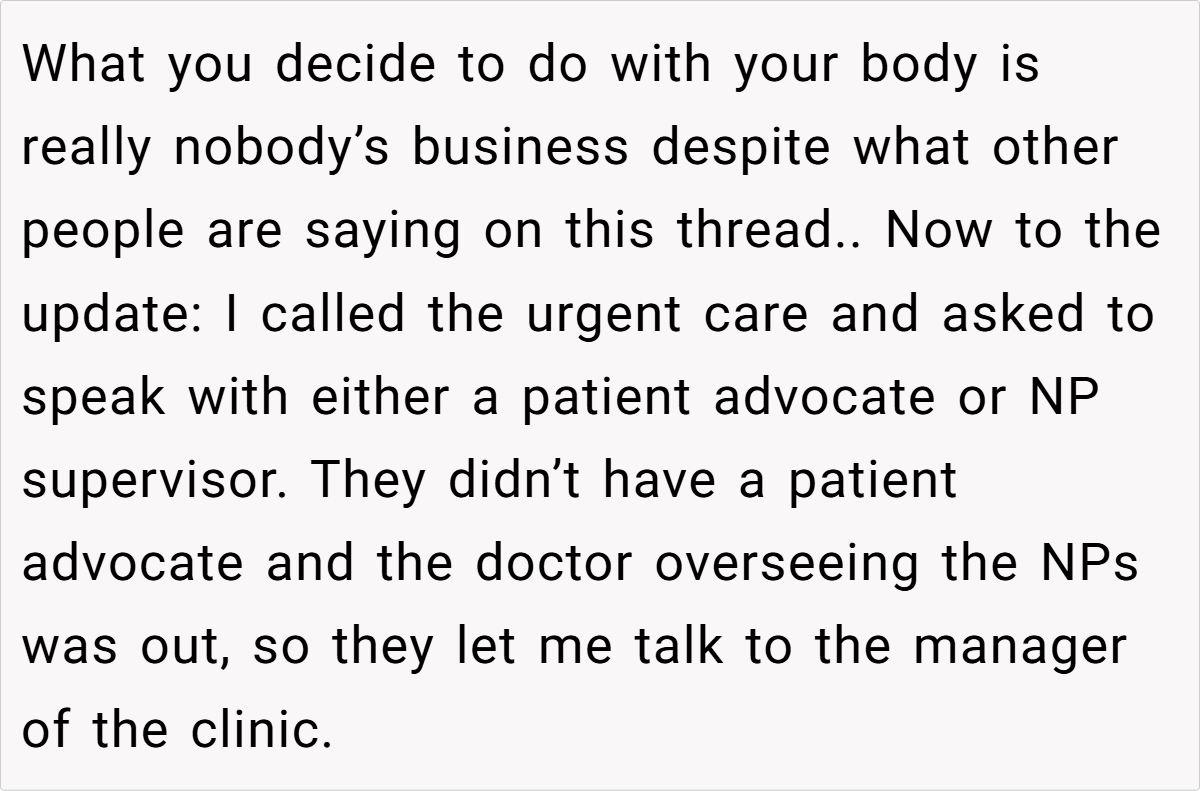 ‘ WIBTA if I report the nurse practitioner at urgent care to HR for basically s**t shaming me?’