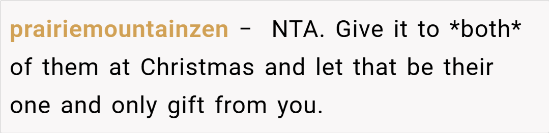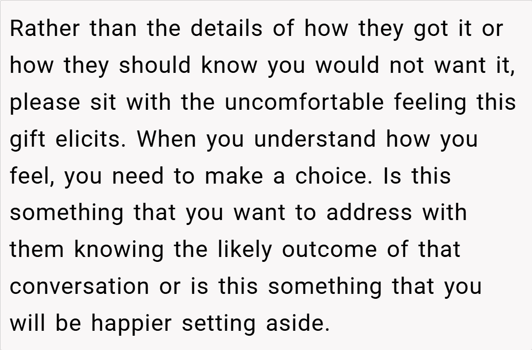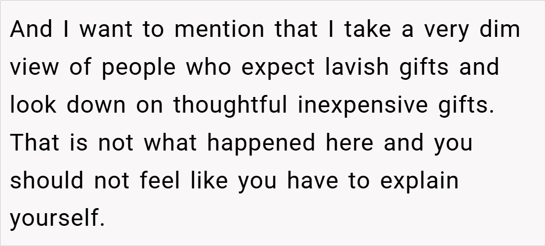 Another group shared personal experiences, with one commenter stating, “I’ve had gifts that felt completely off the mark, and sometimes it’s important to let your family know how much it hurts when they miss the mark. You’re not being ungrateful; you’re simply asking for a bit of understanding.”