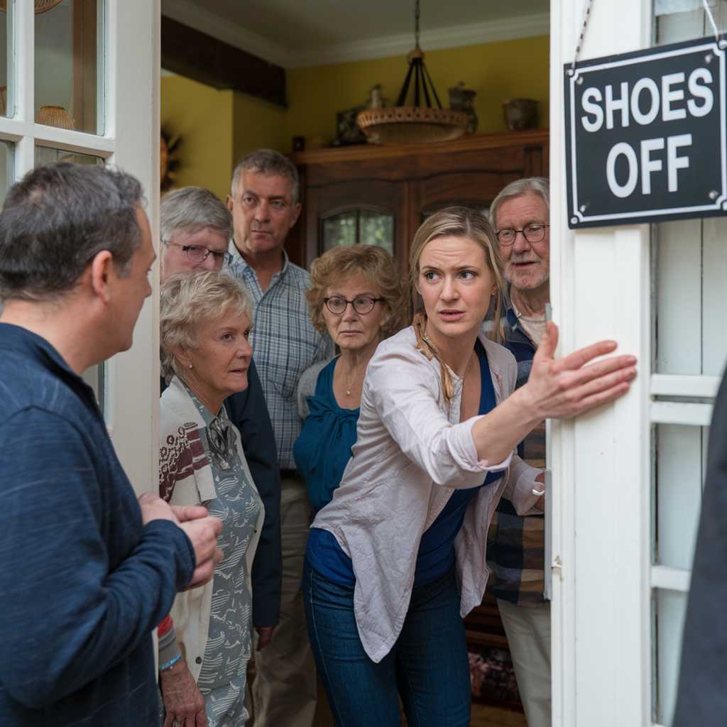 mdthomas − Making people take off their shoes at the door, Eating with a plate, and staying off wet floors. So wanting people to use basic manners and avoid trip hazards makes her a clean freak?