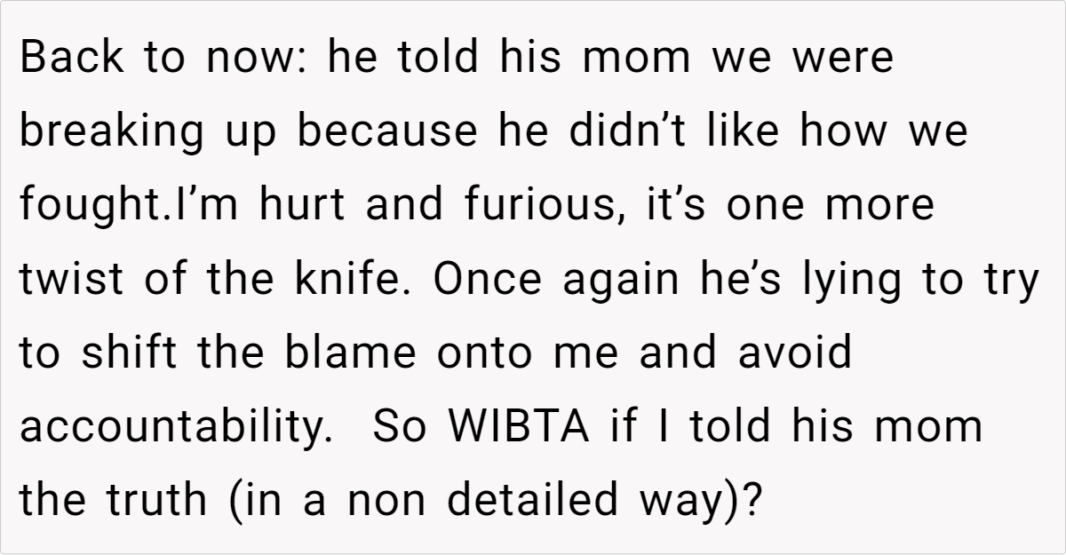 ‘ WIBTA if I told my ex’s mom why we really broke up?’