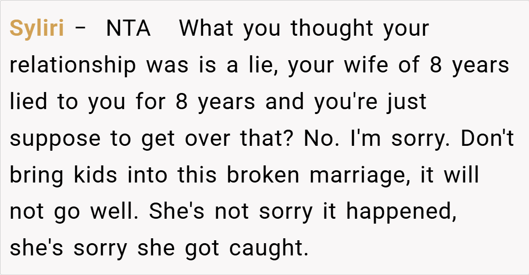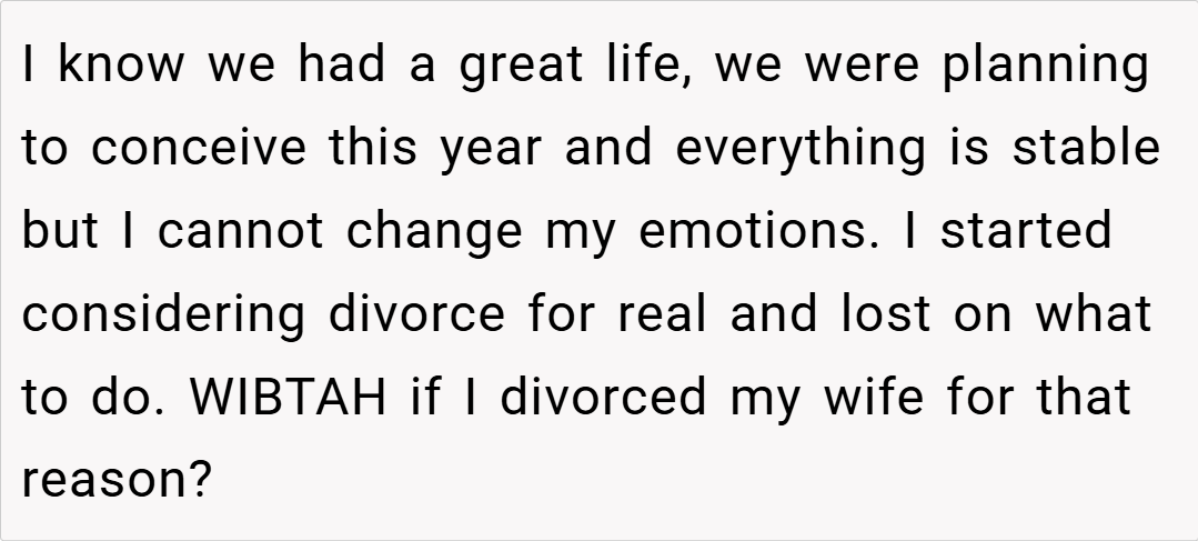 One redditor commented, “Trust is the foundation of any relationship. If you feel like you can’t rebuild that trust, then you have every right to consider divorce. It’s not about the money, the house, or the plans—it’s about whether you feel secure and loved.”