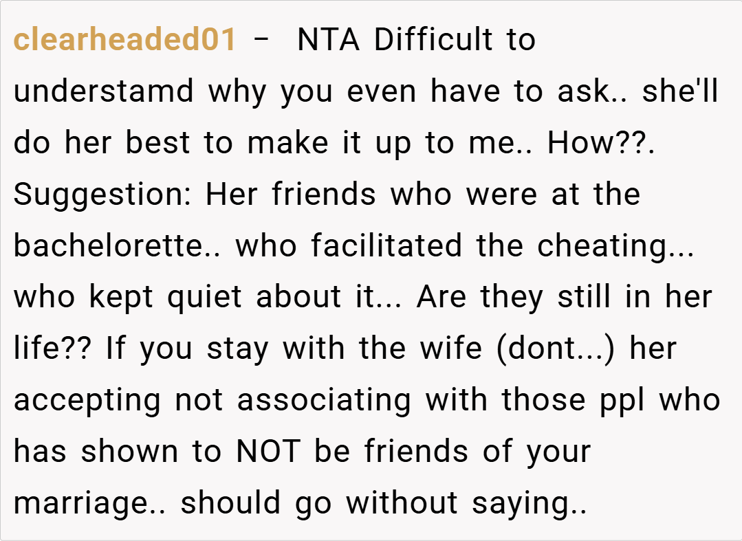 ‘WIBTAH for divorcing my wife because she cheated at her bachelorette party?’