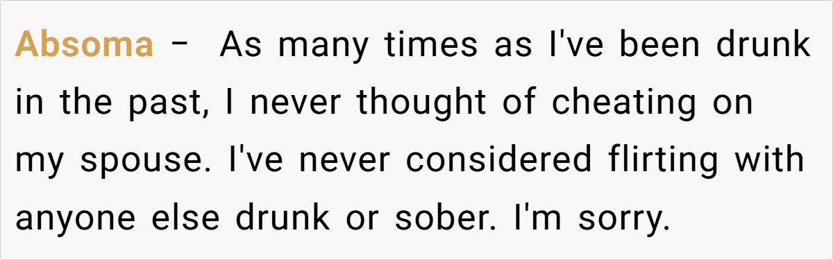 Alcohol’s role cannot be ignored. Dr. George Koob, director of the National Institute on Alcohol Abuse, states, “Alcohol impairs judgment but doesn’t create intent. It lowers inhibitions around pre-existing attractions.” This aligns with the wife’s texts, which suggest latent feelings.