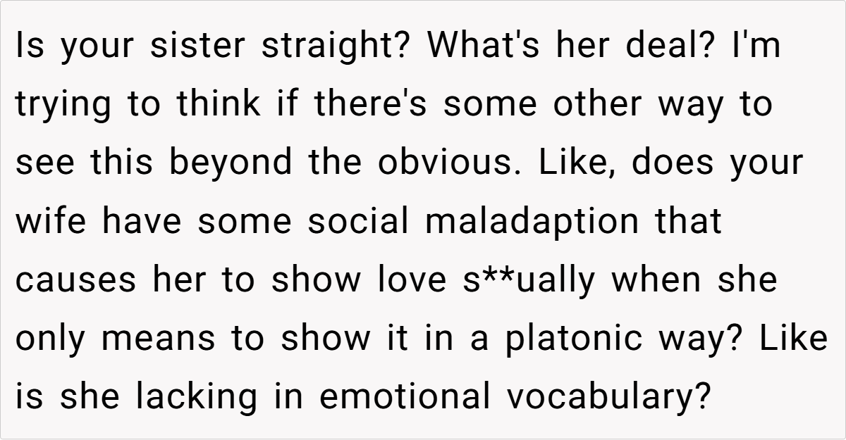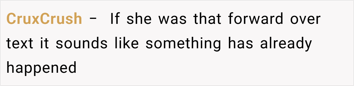Reddit comments largely view the texts as evidence of deeper transgressions, with many urging the user to leave. Top responses highlight the sister’s history and the wife’s awareness of past boundary issues as aggravating factors. Users like u/CafeteriaMonitor stress, “This shows a tremendous lack of care,” while others speculate physical encounters occurred. A minority, like u/wonderlandr, advise empathy, noting the wife’s remorse and the complexity of cutting ties.