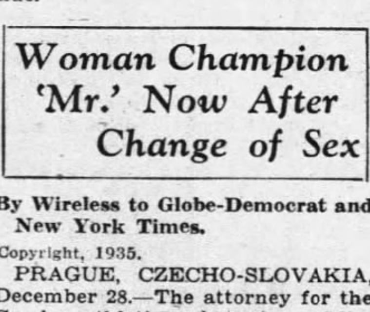 Alice Milliat, head of the Women’s World Games, stated: “If it is proved that [Koubek] has become a man, it is logical to consider that previously she was a woman,” when asked whether to revoke Koubek’s gold medal